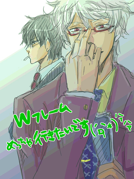 眼鏡だから知的な感じだなぁ・・・先生系でもいいし、普通に原作の中で眼鏡かけてる土方とかでも萌えます(普段はコンタクトだけど)私もこのネタでいつか描いてみたいwww