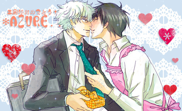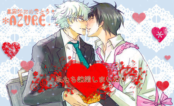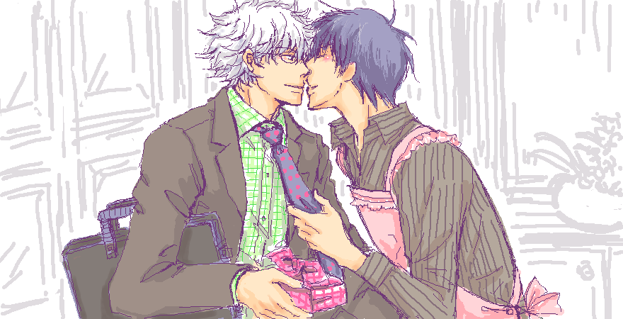 坂田銀八(perspectiveの鏡子さん)×土方十四郎(3105のさかおさん)のWT(ダブルティーチャーパロつまりW教師パロ)の新婚風味絵です。
